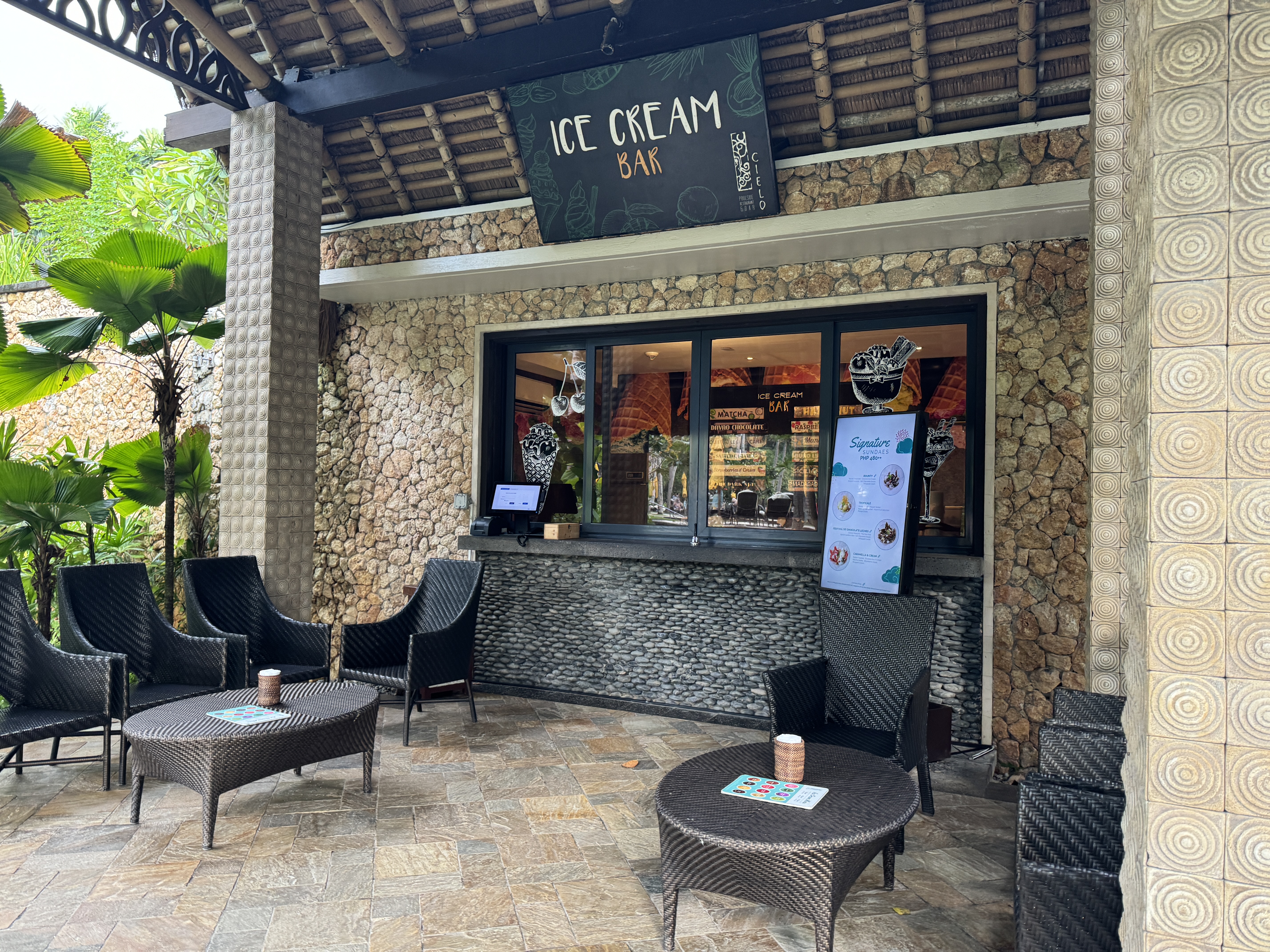 체크인할 때 받았던 아이스크림 바 쿠폰을 이용하면 무료로 4 스쿱을 선택해서 먹을 수 있다!
